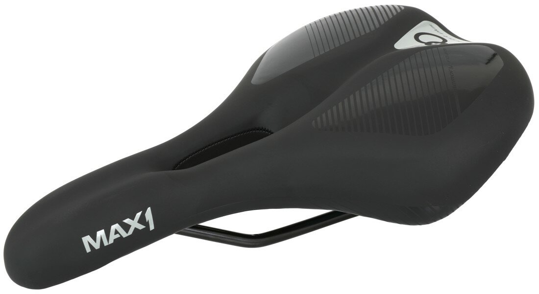 pohodlné turistické sedlo MAX1 Ergo Plus s vloženou paměťovou pěnou, rozměry: 275x175 mm, černá matt/lesk design