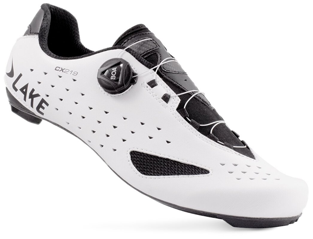 závodní tretry LAKE CX219 s upínacím systémem BOA, 100% karbonovou podrážkou a svrškem z Clarino Microfiber