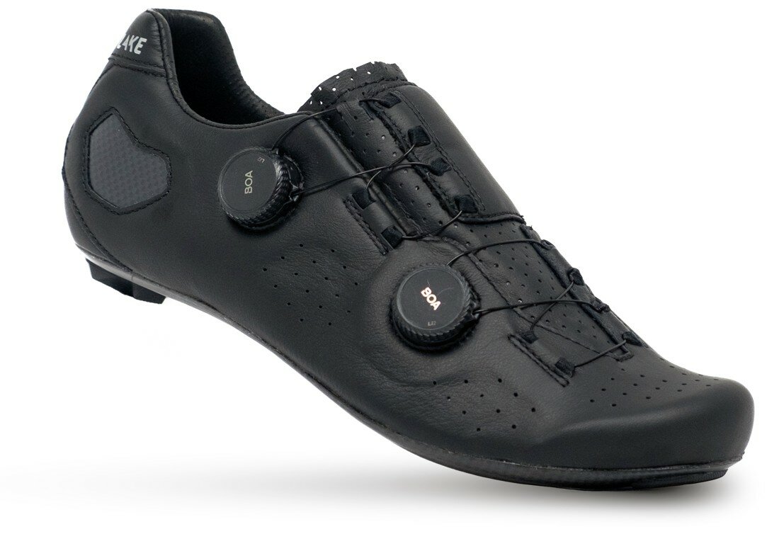 závodní tretry LAKE CX333 s dvěma upínacími systémy BOA, 100% karbonovou podrážkou s tvarovatelným patním dílem a svrškem z klokaní kůže K-Lite