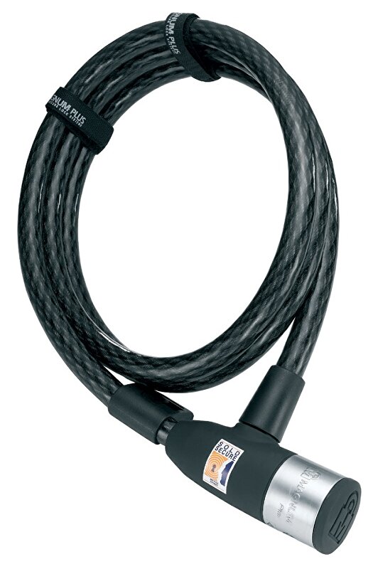 lankový zámek délka 185 cm, ocelové lanko 1,2 cm, 5 klíčů (1s diodou), kovová hlava zámku, nový držák z ABS